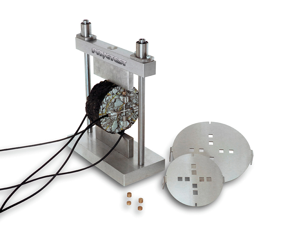 This test is used to determine the tensile creep compliance at different loading times, tensile strength and Poisson’s ratio of hot-mix. The horizontal and vertical deformations are measured near the centre of the specimen using LVDT transducers mounted directly on the specimen. This gives the most accurate results and reduces the chances of operator errors. This configuration has been adopted by many researchers for also determining indirect tensile resilient and dynamic modulus.