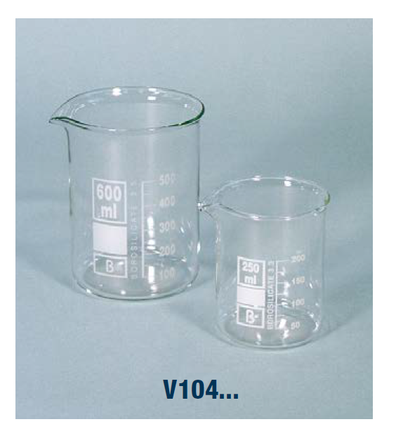 pyrex glass with spout. Squat form.