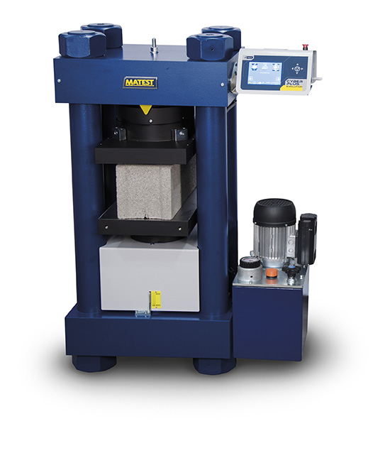 Compression testing machine 2000 kN motorized with Cyber-Plus evolution touch-screen control unit (semi automatic model), high stability, to test blocks max. 500×300 mm, cubes up to 200 mm side and cylinders up to dia. 160×320 mm.