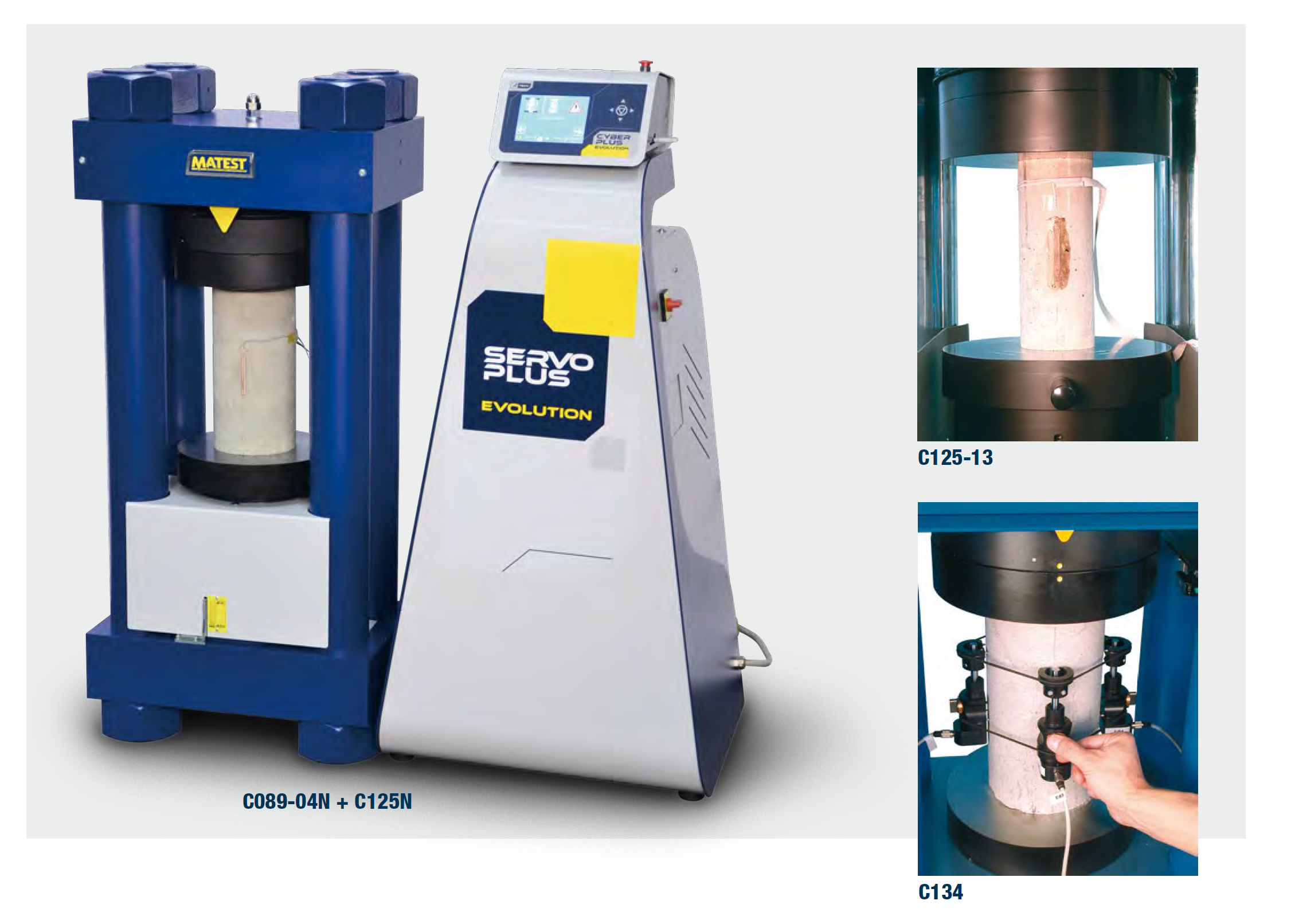 It can be used with a MATEST high stability frame 2000 or 3000 or 5000 kN capacity, coupled to the automatic servo-controlled system “Servo-