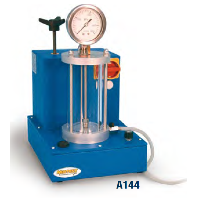 pressures. The dial gauge is set in a metallic support.